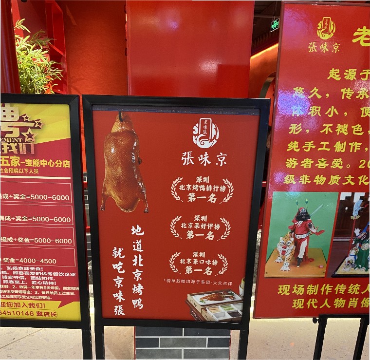 第四要素:門面中應(yīng)該有發(fā)光燈箱廣告,以精致圖文并茂的形式呈現(xiàn)食物高精度畫面,讓顧客產(chǎn)生強(qiáng)烈的食欲;或海報展現(xiàn)食物的制作技法,體現(xiàn)食物背后的匠心,讓顧客震撼、感動。主推產(chǎn)品讓客人看到就想買。這個就好吃,買這個沒有錯。悅得閑廣式點(diǎn)心茶樓每一個店門口推的點(diǎn)心紅米腸就是這一做法的體現(xiàn)。