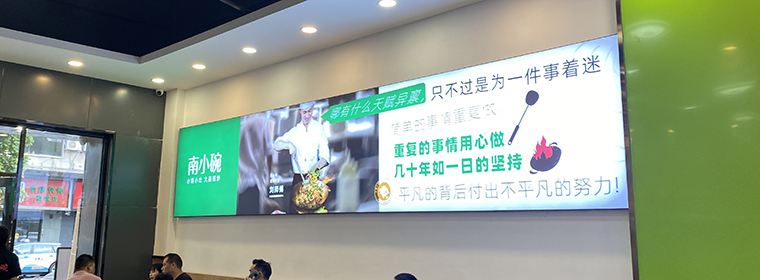 我們通過前期周密的市場(chǎng)考察和詳細(xì)的內(nèi)部調(diào)研,品深餐飲全案設(shè)計(jì)團(tuán)隊(duì)為南小碗提取了“小鍋小灶,大廚現(xiàn)炒”的核心訴求,并在門頭和店內(nèi)廣告畫面不斷重復(fù)強(qiáng)化“小鍋小灶,大廚現(xiàn)炒”小鍋小灶更有鍋氣,大廚現(xiàn)炒更好吃。并把食材原產(chǎn)地,和菜品制作過程在門店形象中不斷放大,重復(fù),讓消費(fèi)者記憶深刻。