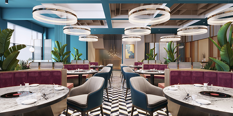 根據(jù)行家港式火鍋的品牌定位,我們餐廳的整體氛圍應(yīng)該輕奢且品質(zhì)感很強(qiáng);熱鬧卻不喧囂,精致有特色但容易讓人親近!整個(gè)餐廳的色彩以暖色調(diào)的不銹鋼金色為主,凸顯火鍋的用餐熱鬧,同時(shí)也讓顧客更容易親近,柜體運(yùn)藍(lán)色表達(dá)出鮮明的港式風(fēng)格,同時(shí)也點(diǎn)明我們海鮮火鍋的特色。
